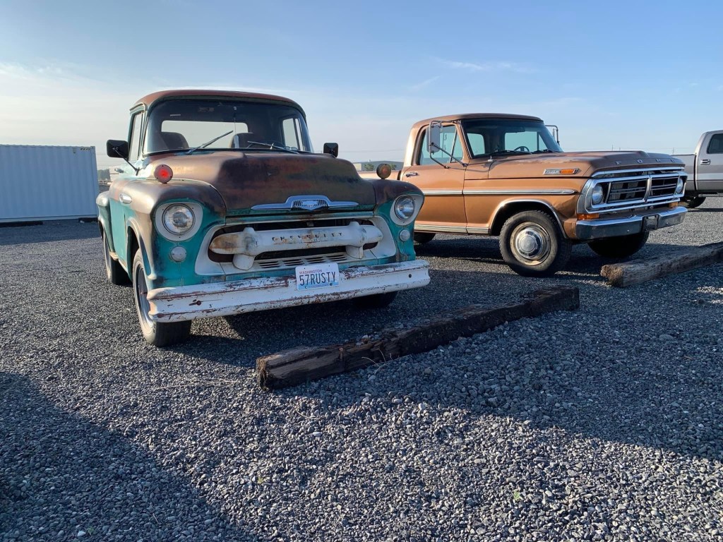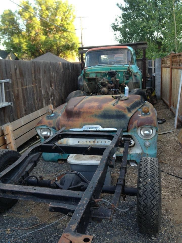 Sometimes it’s good to look back and see where we started. Rusty came to me as a 2-ton truck with a 16’ flat bed. It took 4 years to figure out what to do with him. I had to source a pickup frame, (1955) a door molding (a gift from a friend on Facebook), a steering column(1958), adapt the master cylinder, find a bed or box (1964?), then find the head panel (1954)once I found the box on a utility trailer, but I had to replace the wood and while I was at it I replaced the metal strips with stainless steel (shiny!). The most challenging part of the conversion was having a 2 piece driveline built to adapt the 2-ton 5 speed transmission to a car sized differential(a mid 60s GM positrac)